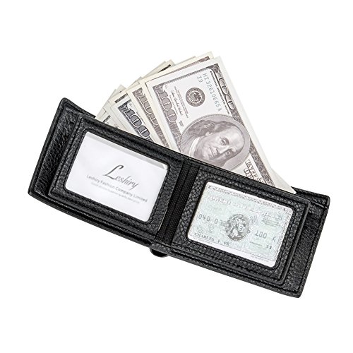-. Binding : Apparel -. Brand : Leshiry -. Color : Black -. Department : mens -. Feature : ★ Features:Gift for friends&Gathering/school souvenir.Pretty P.R.Ice Chin Choice. / ★ Material:Pebble-grain Faux Leather/PU leather / ★ Size:11.5cm x 9cm x 1.5cm/4.5" x 3.5" x 0.6" (Approx.) / ★ Capacity:With Cash Compartments &Cards insert position & Photo/ID card holders / ★ Package: With emboss logo Leshiry at coner.And Leshiry gift box (size 13cm x 10cm x 3cm/5" x 4.25" x 1"in) with logo Leshiry -. Model : L602 -. NumberOfItems : 1 -. PackageQuantity : 1 -. ProductGroup : Apparel -. ProductTypeName : ACCESSORY -. Size : One Size -. Title : Leshiry Fashion Men's PU Leather Wallet Money Clip Card Holder
