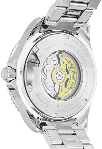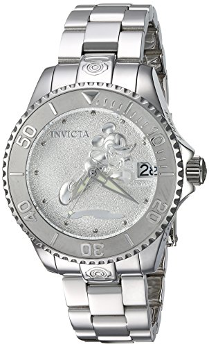 Invicta 24532 Disney Grand Diver Limited Edition women's automatic dive watch features a 38mm wide and 13mm thick solid stainless steel case with a unidirectional rotating bezel and textured screw down crown. Invicta 24532 is powered by Japanese TMI NH35A automatic movement with 24 jewels. This beautiful watch also features a textured Mickey mouse printed silver tone dial with green accents silver tone luminous hands and dot hour markers along with the date display function, scratch resistant mineral crystal and water resistant to 300 meters. Invicta 24532 is equipped with an 18mm wide solid stainless steel bracelet with a fold over safety lock clasp. Invicta 24532 women's Disney Grand Diver silver dial stainless steel bracelet automatic dive watch is brand new and comes in an original Invicta gift box and is backed by a 5 year limited warranty.Feature