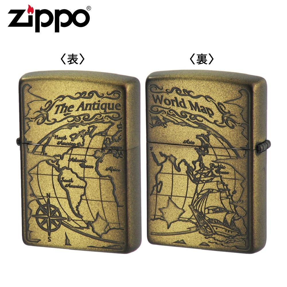 | 両面にワールドマップを描いたZIPPO。新たなスタートを切る方へのプレゼントにもオススメです。イブシ加工もアンティーク感の演出に一役買っています。 |