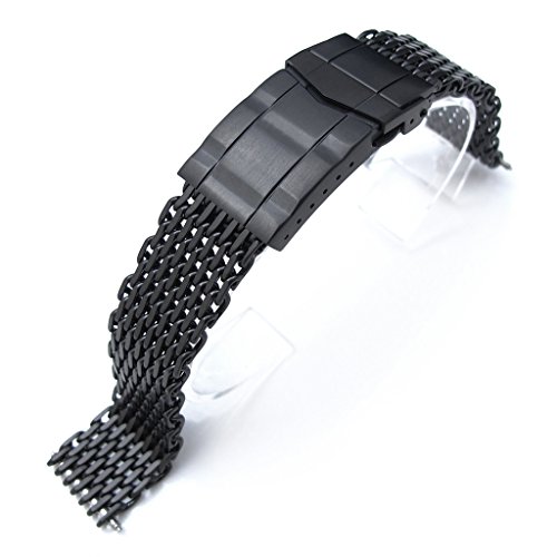 -. Feature : Shipping Estimate : 7 - 10 Business Days within US. / Material: 316L Stainless Steel, 1.2 Wire Mesh / Buckle type: 316L Stainless Steel Solid Submariner Diver Clasp with Push Button / Finish: Matte PVD Black / Design to fit: All watches with 18mm lug width