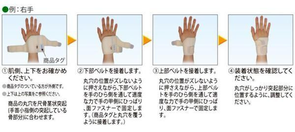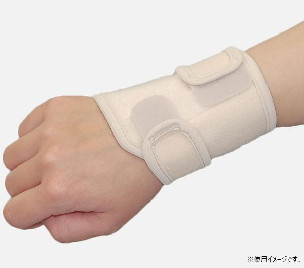 fk094igrjs抗菌加工を施した伸縮生地を使用しています。上部ベルトと下部ベルトに分かれているため、症状にあわせて適度な場所で固定することができます。尺骨側と手の甲側にステーが配置されるので効果的な尺屈・背屈の可動制限が可能です。左右兼用で、面ファスナー接着により着脱も簡単に行えます。ソフトな素材で構成され、手首以外に負担をかけないので、ADLを制限しません。