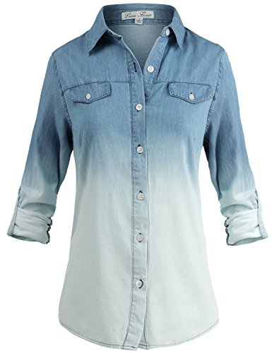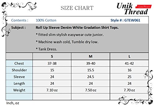 -. Binding : Apparel -. Brand : Luna Flower -. Department : womens -. Feature : FEATURES: These denim shirts are ALL long sleeve, collared neck, button ended and comfortable. / GARMENT CARE: Machine wash cold and do not bleach / SIZE: Please refer to the size chart we provided to find the right fit for you. Do not use Amazon size chart as reference. / ATTENTION: These denim shirts run smaller than normal! It is NOT standard US size. We recommend ordering a size up if you are looking for US size. / COLOR DISCLAIMER: All products are representation of the actual products. We strive to display every product as accurate as possible. However, we cannot guarantee the colors are exactly same as the actual products due to many factors such as lighting and monitor settings. -. ProductGroup : Apparel -. ProductTypeName : SHIRT -. Title : Luna Flower Women's Roll Up Sleeve Denim Checker Flannel Shirt Tops