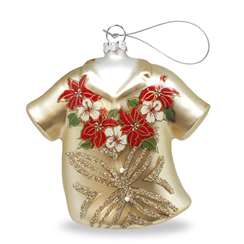 Molded Glass Ornament ALOHA SHIRT - HOLIDAY HIBISCUS
