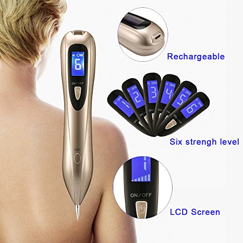 Fishonly Beauty Spot Removal Pen Home Salon Portable LED Display for Remove Freckles /Age Spot/Flat Moles Fleshy Nevus Dot mole Removal Pen Skin Blemishes Birthmark Remover Beauty Device With Replacea