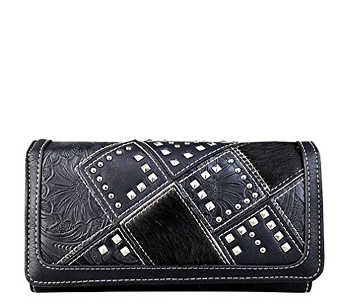 -. Title : New Trinity Ranch Floral Embossed, Hair-on-Hide Organizer Wristlet Wallet- Black