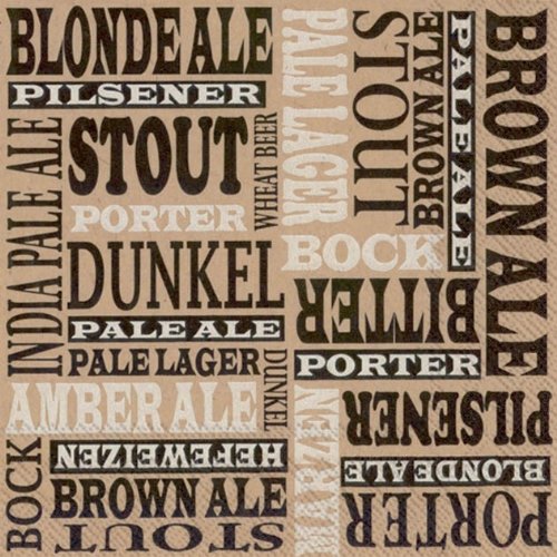 Ideal Home Range 20 Count Boston International 3-Ply Paper Cocktail Napkins, Brown Paper Beers