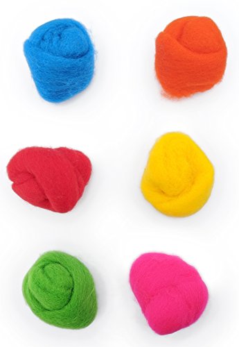 6 Pack - 100% Wool Roving for Needle Felting - Brilliant Brights - Bold Primary Colors - 2.4 oz