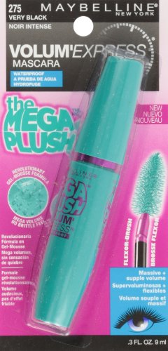 -. Binding : Misc. -. Brand : Maybeline New York -. Color : Very Black -. Feature : Waterproof / Mascara / Mega / Plush -. Label : Maybelline New York -. Manufacturer : Maybelline New York -. NumberOfItems : 1 -. PackageQuantity : 1 -. ProductGroup : Beauty -. ProductTypeName : BEAUTY -. Publisher : Maybelline New York -. Size : 0.3 oz -. Studio : Maybelline New York -. Title : Maybelline New York Volume Express Mega Plush Waterproof Mascara, 0.3 Fluid Ounce