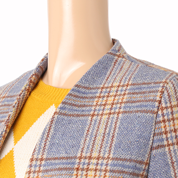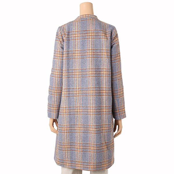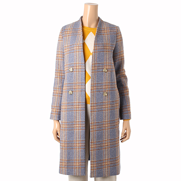고급스럽고 시크한 블루체크 패턴의 롱 코트입니다.