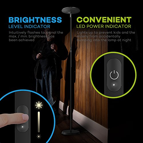VAVA LED Torchiere Floor Lamp for Living Room, UL Adapter for Safety Voltage Conversion, Trip-Proof Two-Part Cable, Stepless Dimmable Adjustable Lamp, Memory Function, Assembly by Hand, Touch Control