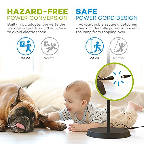 Safe Build & Operation: Built-in UL adapter converts the voltage output from 120V to 24V to avoid electroshock; two-part cable detaches when accidentally pulled to prevent the lamp from toppling over