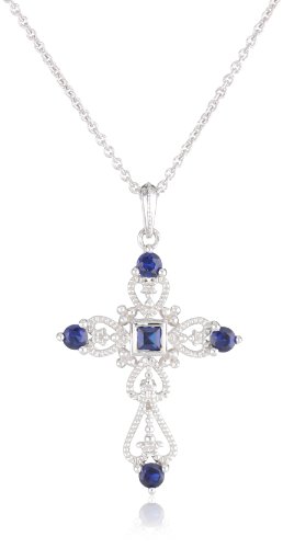 -. Title : Sterling Silver Created Ceylon and Created Sapphire Cross Pendant Necklace, 18"