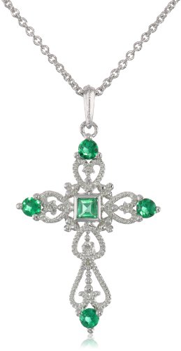 -. Feature : Cross necklace in sterling silver featuring pendant with created white sapphires and created ceylon gemstones / Decorative bail / Rolo chain with lobster-claw clasp / Gemstones may have been treated to improve their appearance or durability and may require special care. / Imported