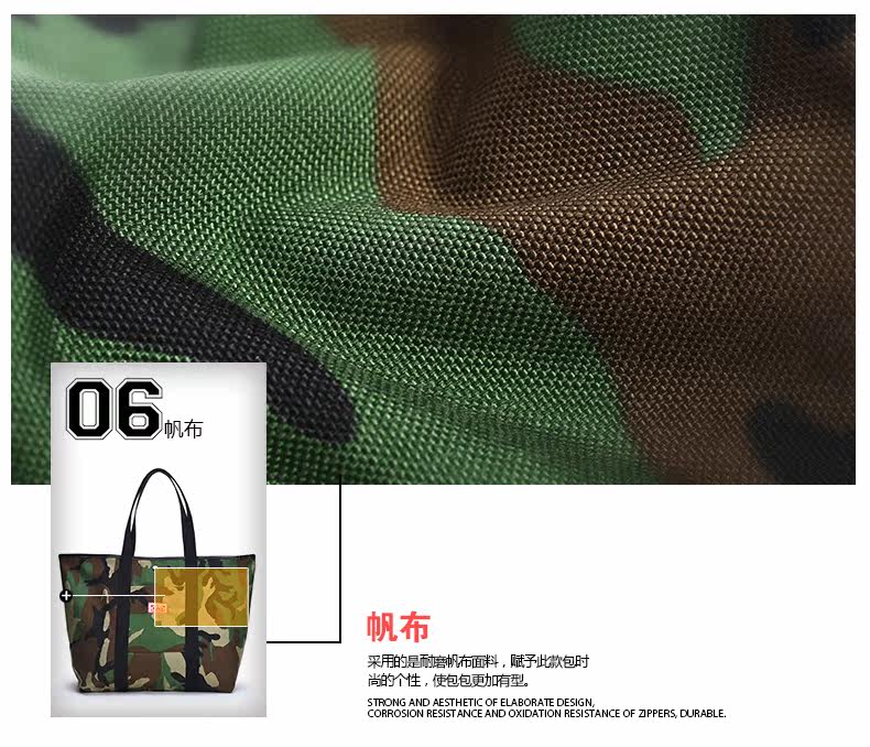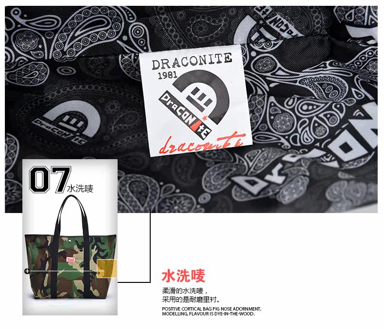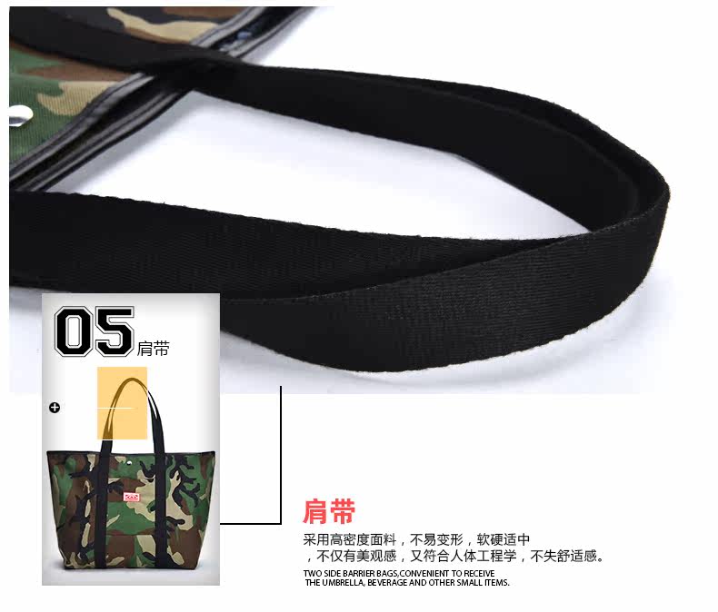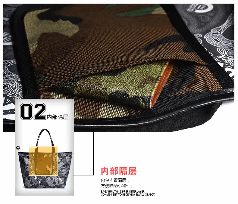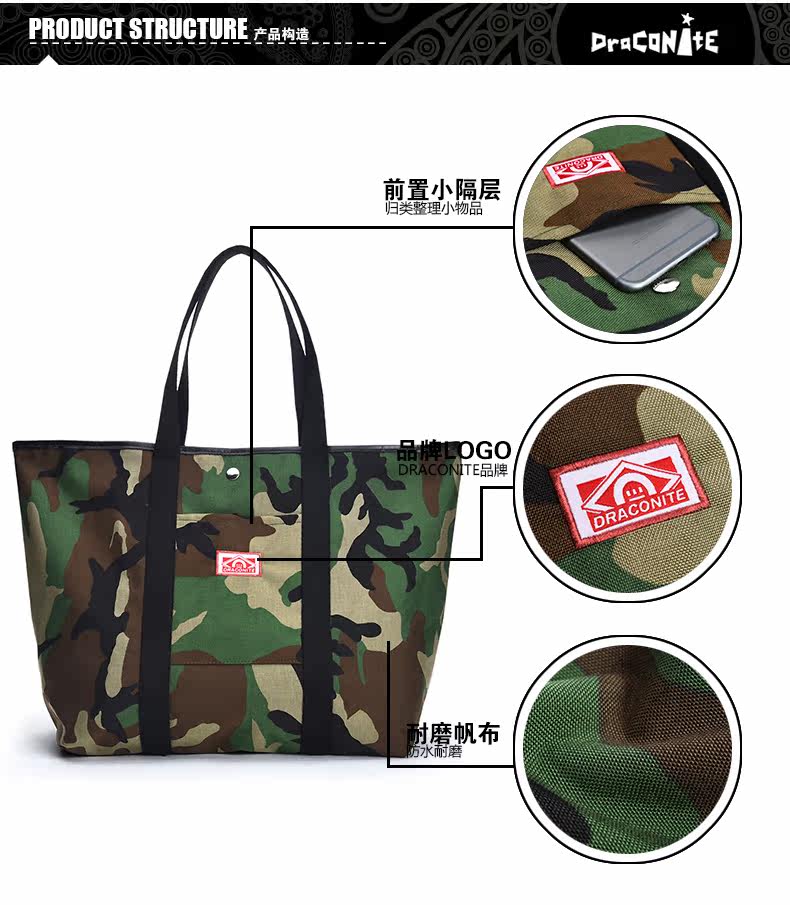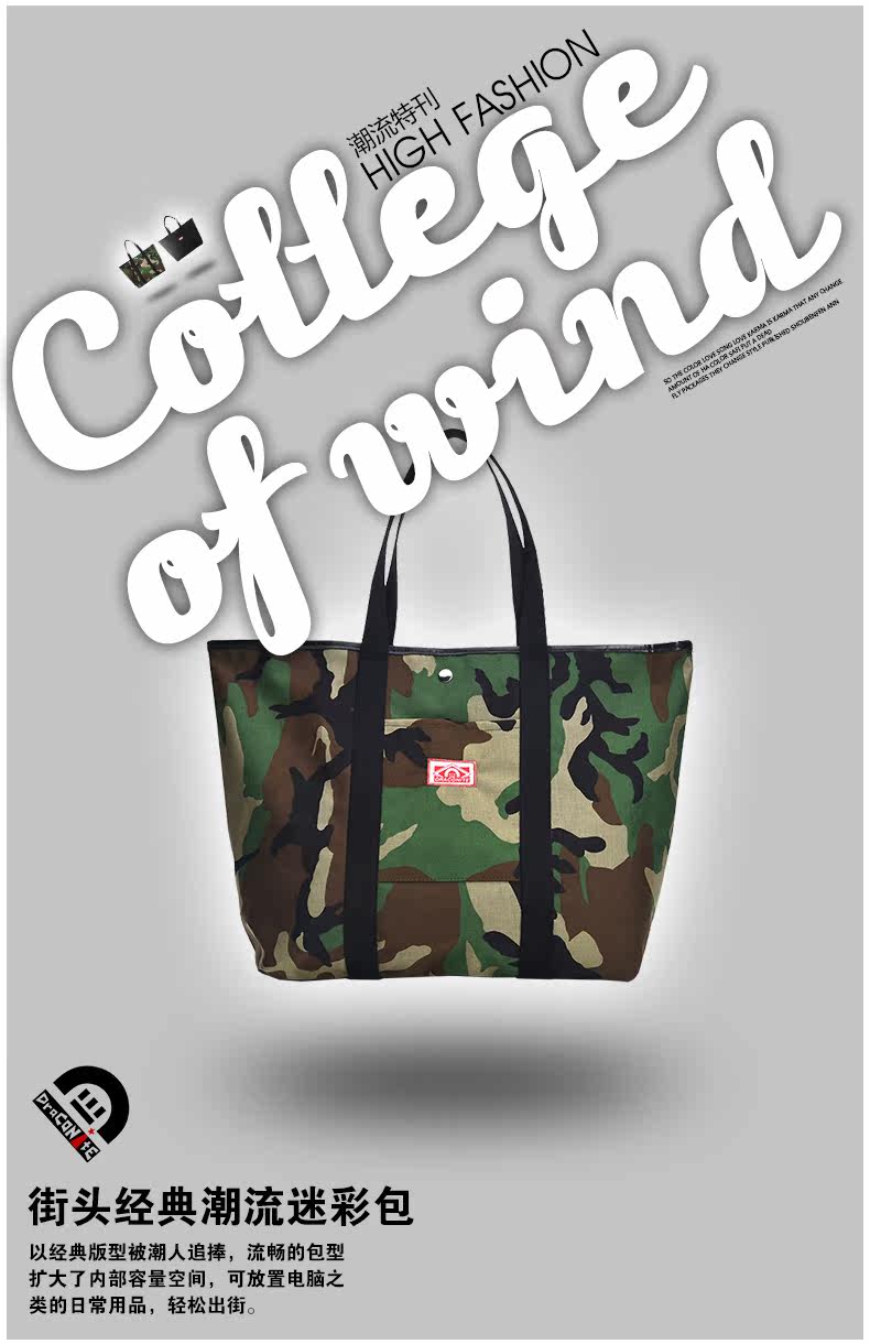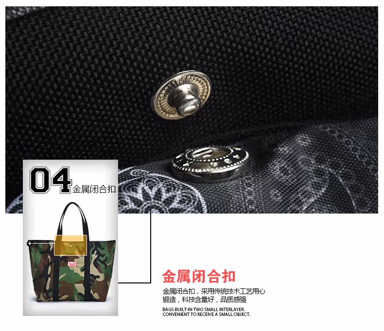 潮牌欧美风男女迷彩撞色尼龙防水印花托特包手提包12141