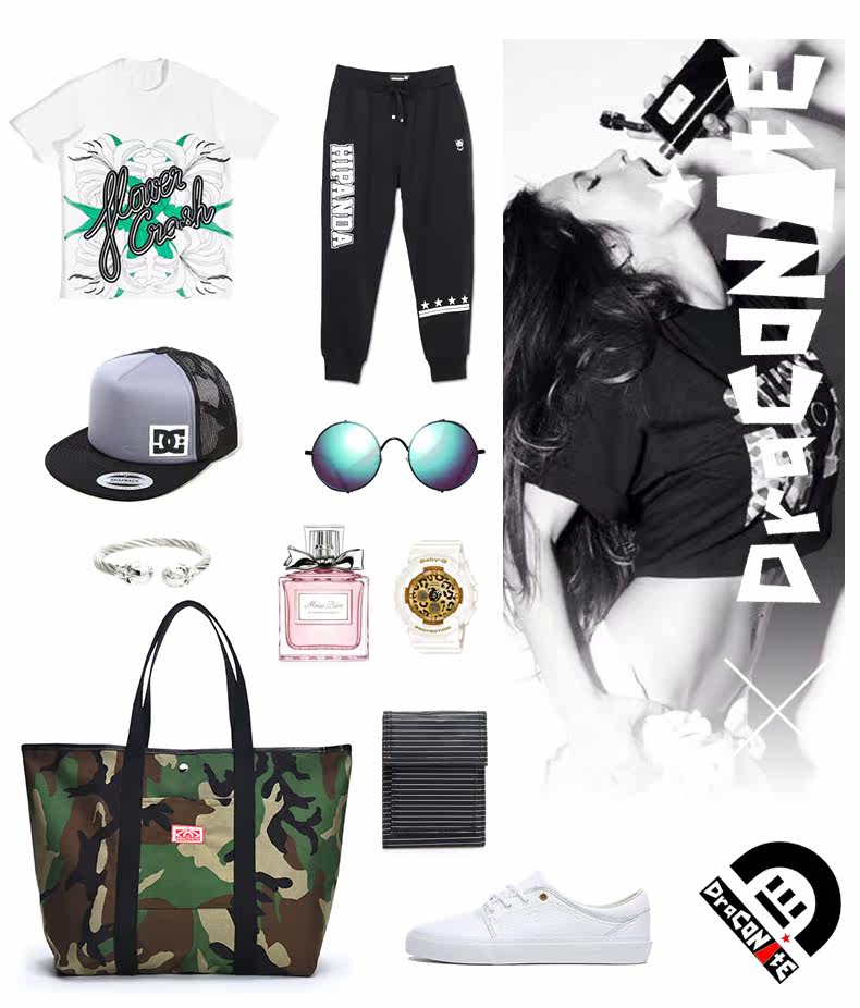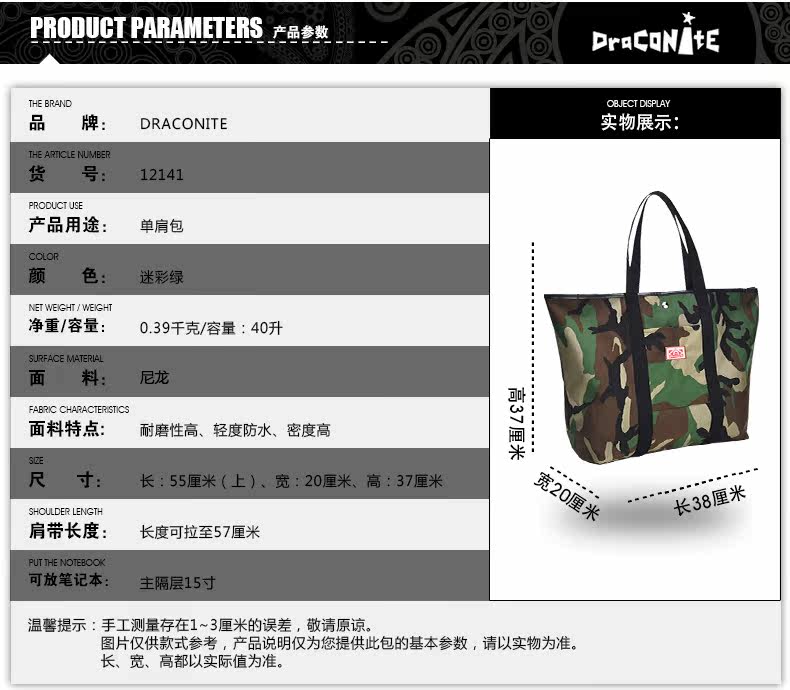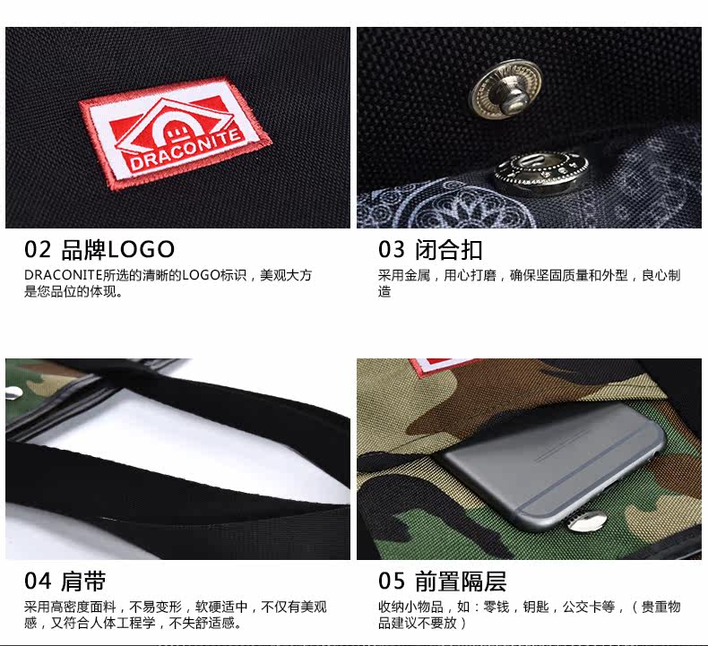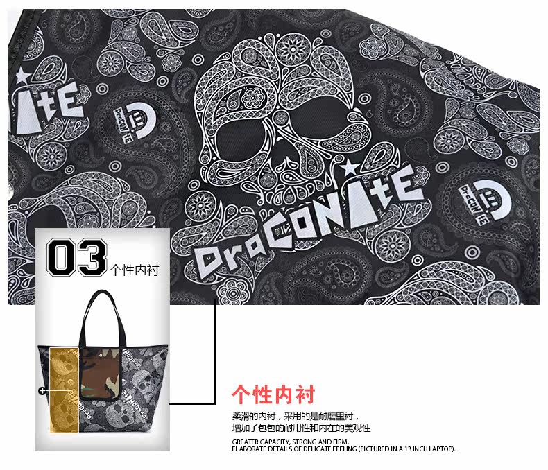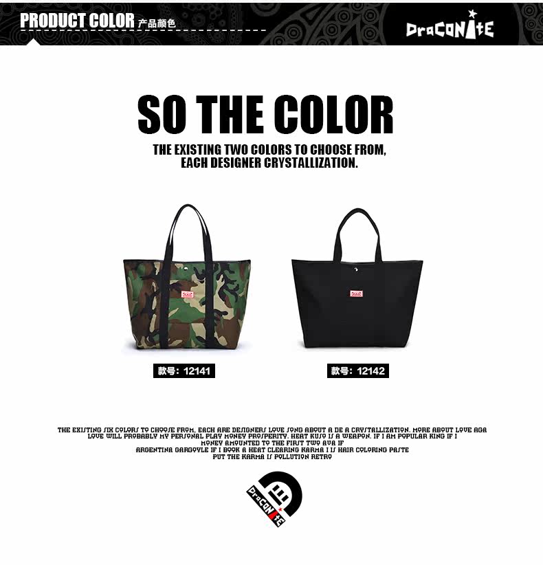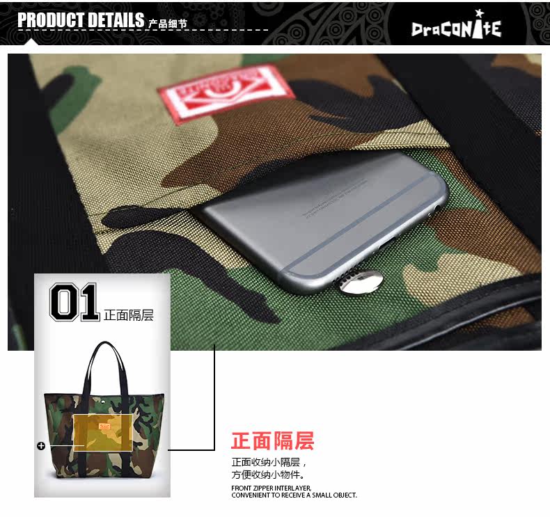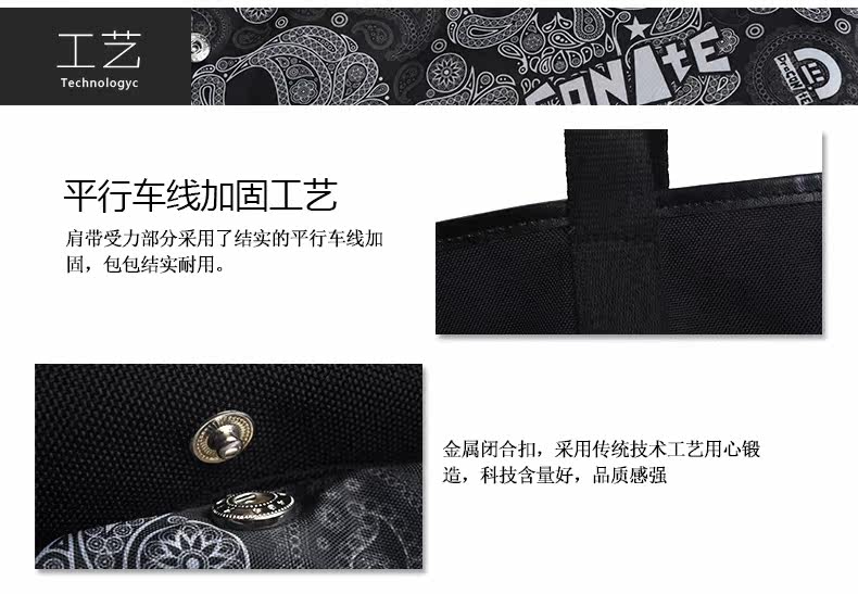 潮牌欧美风男女迷彩撞色尼龙防水印花托特包手提包12141
