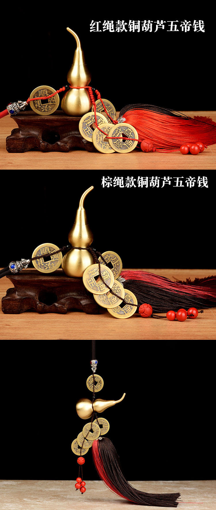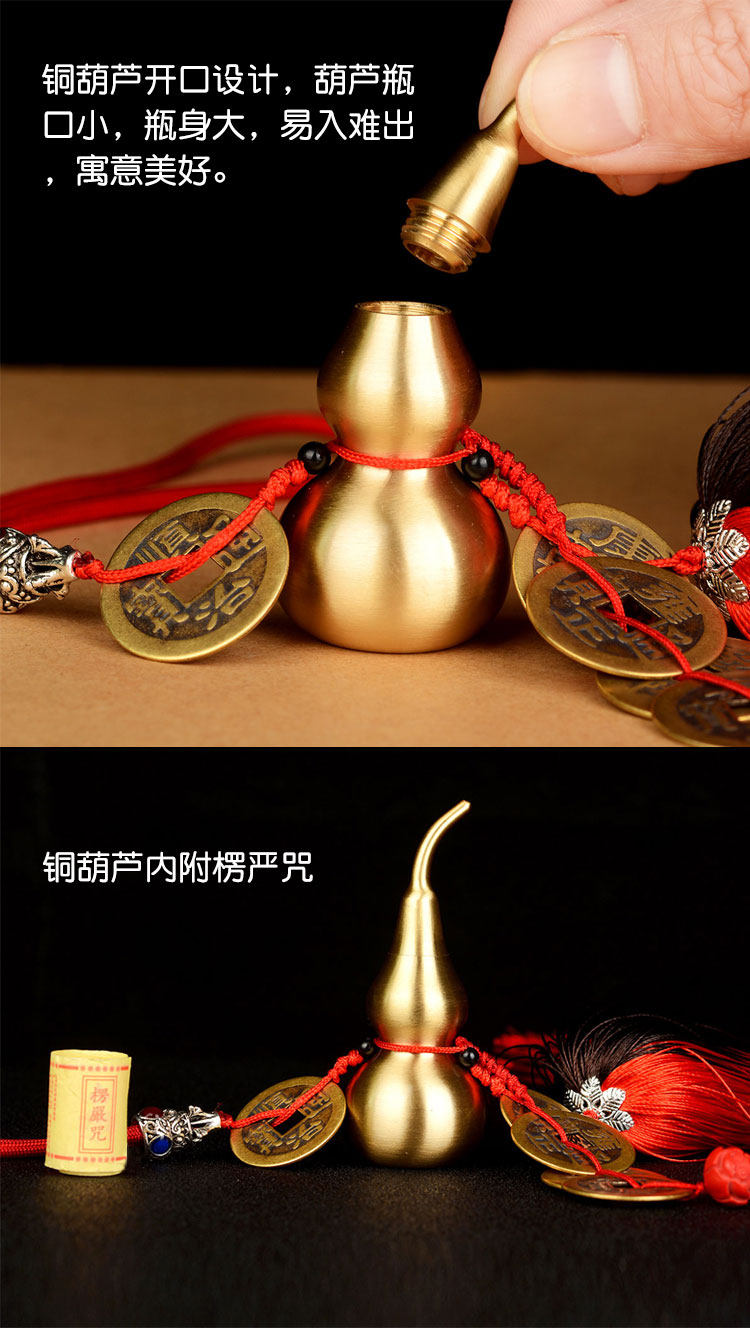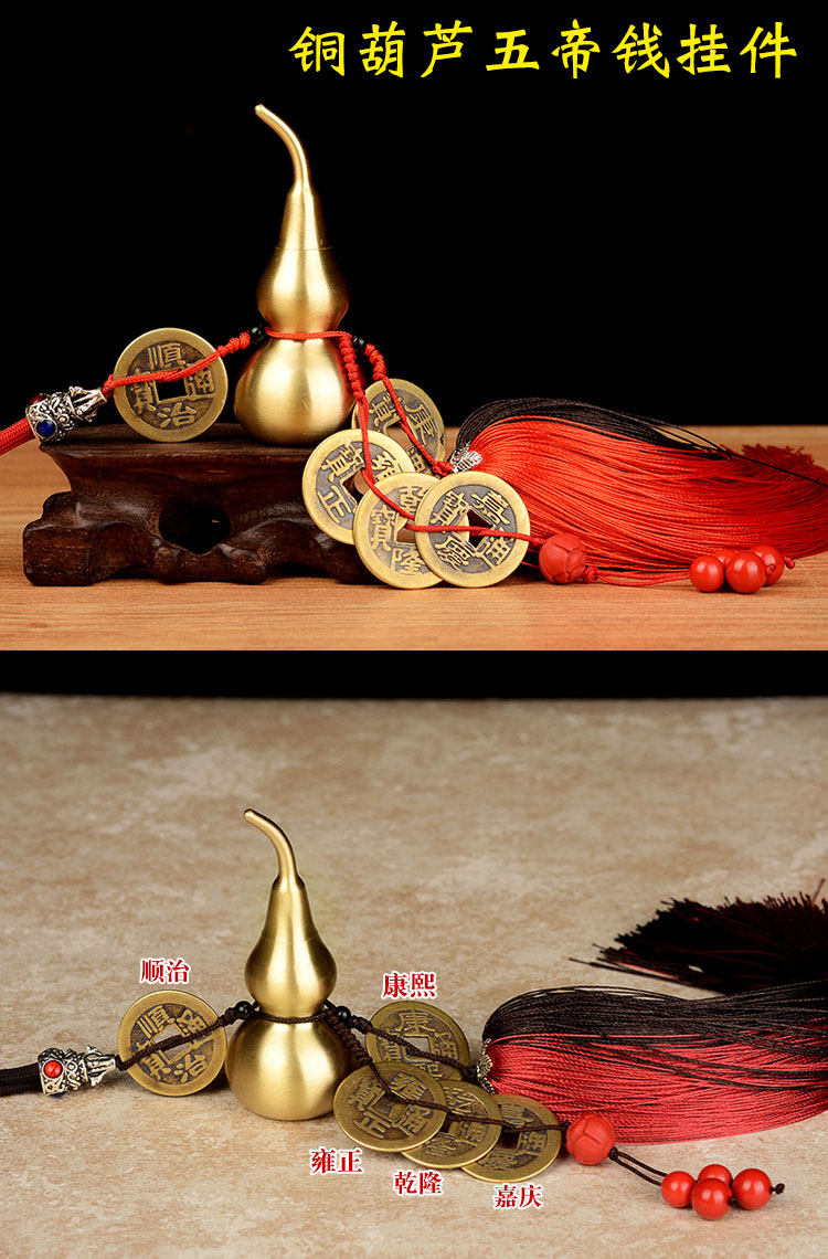 纯铜葫芦五帝钱挂件招财工艺品汽车挂件家居装饰品摆件