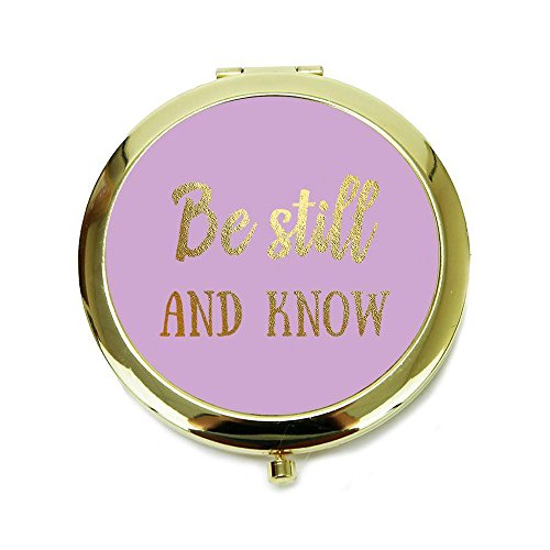 Be Still and Know Gold Tone and Purple 2.5 inch Round Metal Compact Mirror