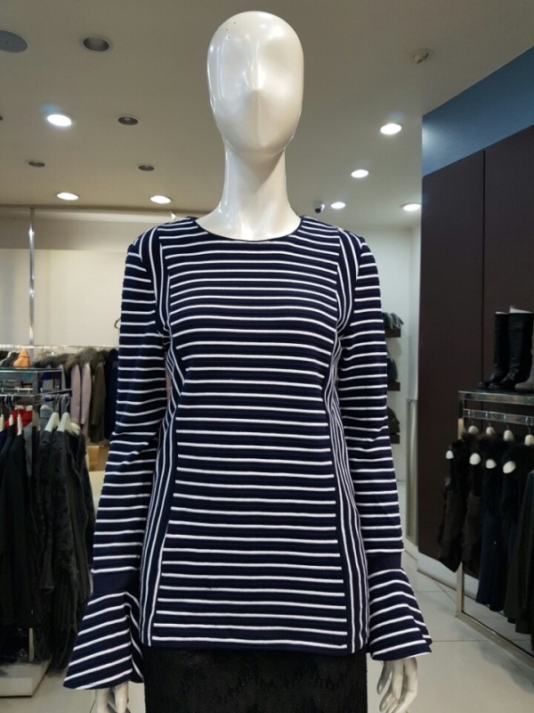 프릴소매 장식 단가라 티셔츠
