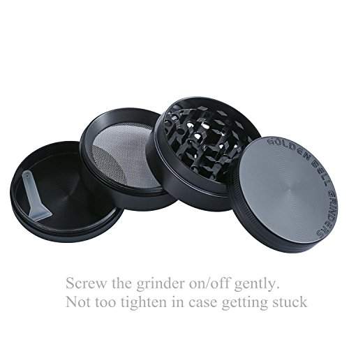 Golden Bell 4 Piece 2" Spice Herb Grinder - Color:Black