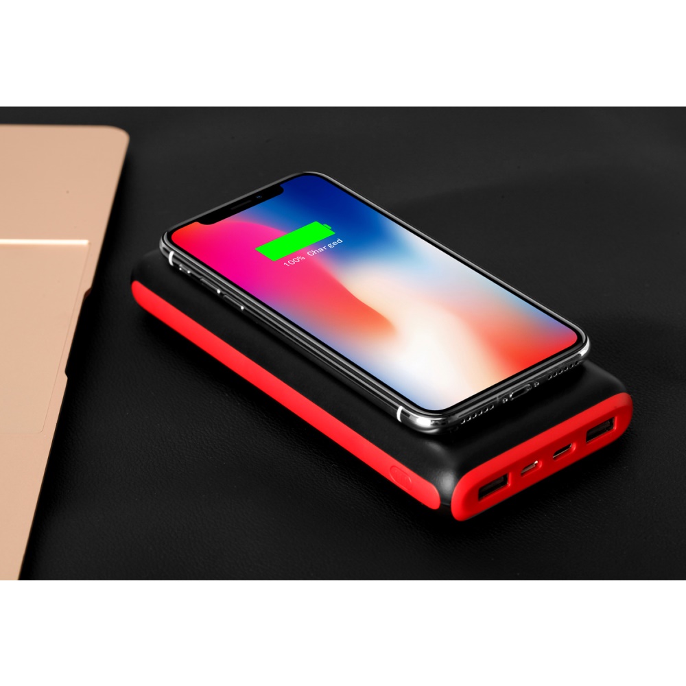 Combined Qi Wireless charger and high capacity 20000mAh portable power bank that let you charge your phone anywhere, perfect battery pack for everyday use, travel, camping or hiking. Enjoy the freedom to charge the Qi devices, only need to put your Qi-enabled phone on the pad, then rapid inductive charging without the need to plug USB cable to your phone. Really full capacity 20000mAh, provides powerful and stable power supply for charging your devices. Equipped with dual USB ports to fast charge two digital devices simultaneously. Equipped with Micro USB and Type-C dual input to meet different charging cables.