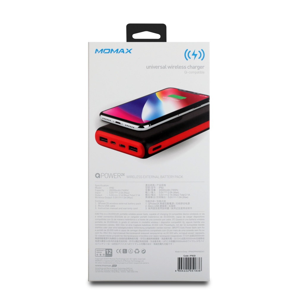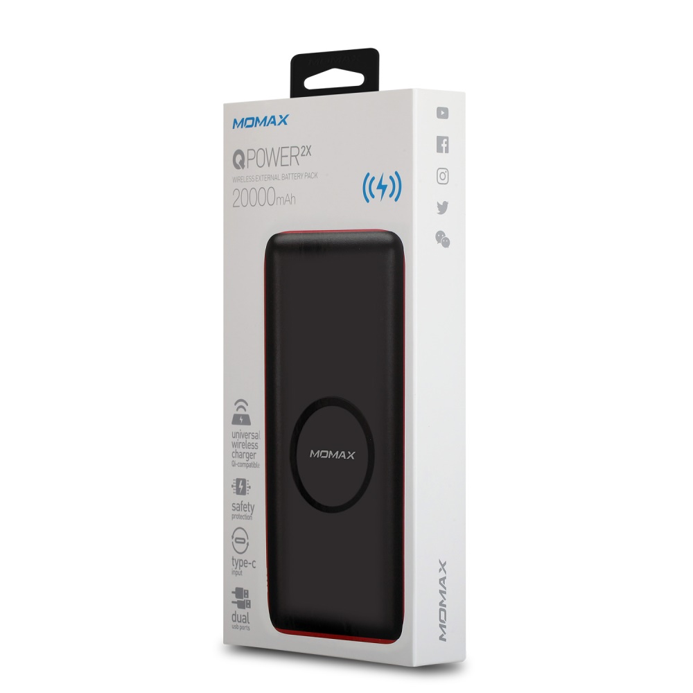 MOMAX Q.Power 2X Qi Wireless Charger Portable 20000mAh Dual USB Power Bank