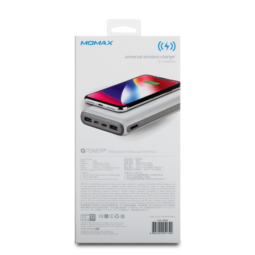 Momax iPower Air 2X IP82 20000mAh Wireless Charging Power Bank