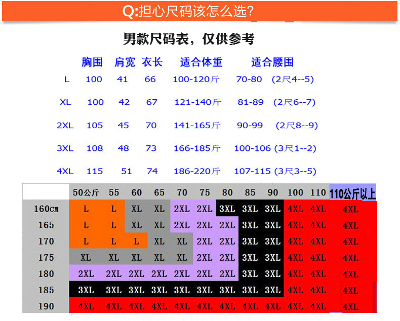 ? ? 尺码作为一个参照,不是绝对的,如果身材高,体重小,跟身材不高,体重大的人,选择的尺码可能是相同的,像既高又瘦的或者不高但是胖的,,这样的身材选择起来,就要斟酌一下,如果以身高为选择标准,可能选择的尺码就会偏肥一些,要是以肥瘦为标准,选择的尺码衣长会短一些,这就需要看买家实际的需求了。