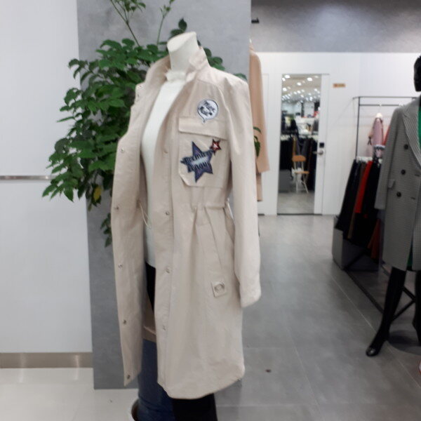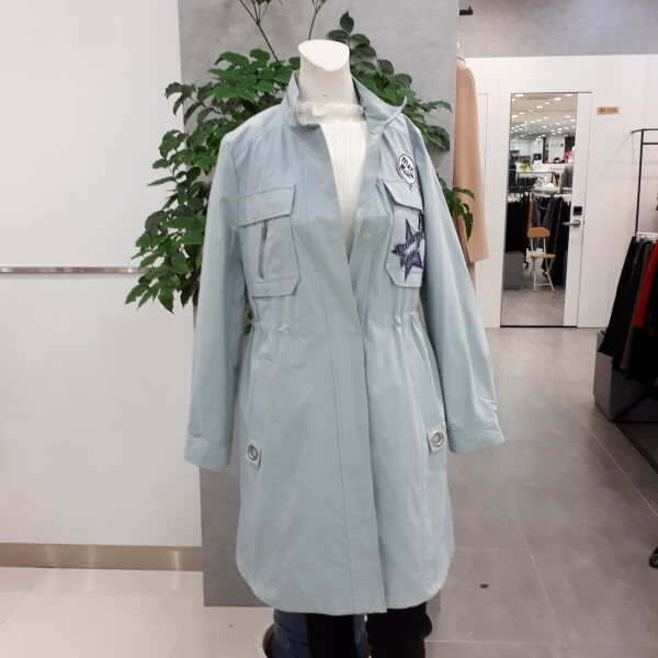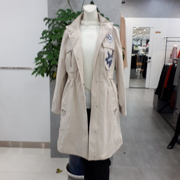 별 와펜이 있는 야상점퍼입니다. 허리 라인을 줄일 수 있습니다