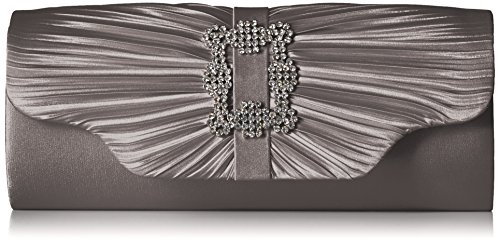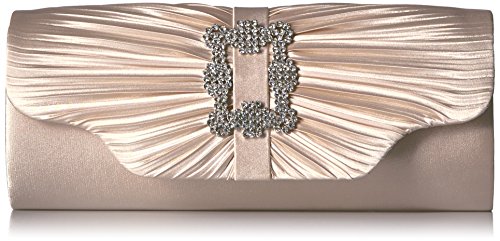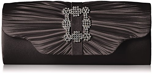 You'll be the belle of the ball in the Jessica McClintock mary satin brooch clutch. This clutch is full of elegance and class with it's pleated details and beautiful rhinestone brooch. Wear it as a clutch or on your shoulder with a drop in strap included.