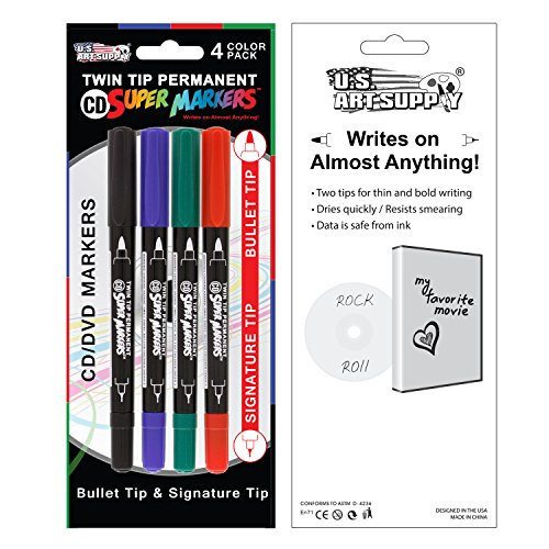 SET OF 4 CD/DVD MARKER COLORS: Premium quality Twin Tip markers with 4 bold colors that feature a specialized Bullet Point Tip & Fine Writer Tip