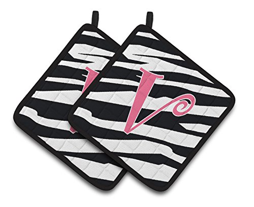 Caroline's Treasures Monogram Initial V Zebra Stripe & Pink Pair of Pot Holders CJ1037-VPTHD, 7.5HX7.5W, Multicolor