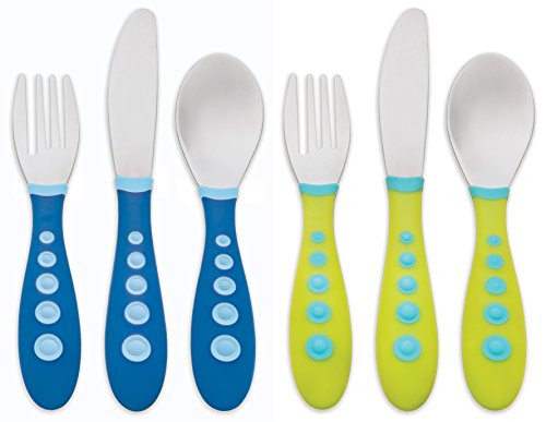 Gerber Stainless Steel Tip Kiddy Cutlery 6-Piece Set, Green/Blue