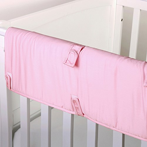 -. Binding : Baby Product -. Brand : The Peanut Shell -. Feature : Crib rail guard protects your teething baby from harmful toxins while keeping the crib looking as good as new, free of teeth marks and drool discoloration / The soft, padded rail-guard securely and easily attaches to the crib with five hook and loop tabs / Features three loops to attach baby's favorite toys to play with while awake / Measures 50.25 by 17.5 inches to fit the long side of most cribs; made from 100% cotton sateen fabric; 100% polyester fill; machine wash and dry / Coordinating crib bedding and nursery decorating accessories are available from The Peanut Shell to create your perfect nursery -. Label : Farallon Brands -. Manufacturer : Farallon Brands -. ProductGroup : Baby Product -. ProductTypeName : BABY_PRODUCT -. Publisher : Farallon Brands -. Studio : Farallon Brands -. Title : Solid Color 100% Cotton Padded Crib Rail Guard by The Peanut Shell