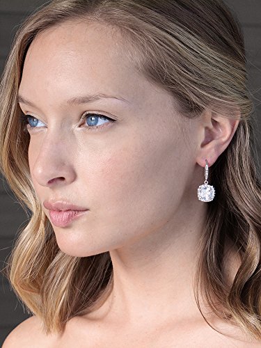 Ready to make a sparkling statement? All eyes will be on you flaunting these exclusive Mariell earrings with gleaming cushion cut center stones and pave CZ halos. With AAAAA grade zircon gems and luxurious genuine Platinum plating, these gorgeous silver drop earrings will jazz up any occasion. We love the dress up or dress down versatility of these square-shaped dangles. Whether walking down the aisle or going out for a night on the town, these top-selling drop earrings will add an unforgettable splash of vintage glamour. They measure 1 3/8" h x 9/16" w. We promise you'll love these sophisticated Cubic Zirconia earrings or your money-back. Treat yourself or someone you love to some seriously gorgeous sparkle. Lifetime Guaranteed.Feature