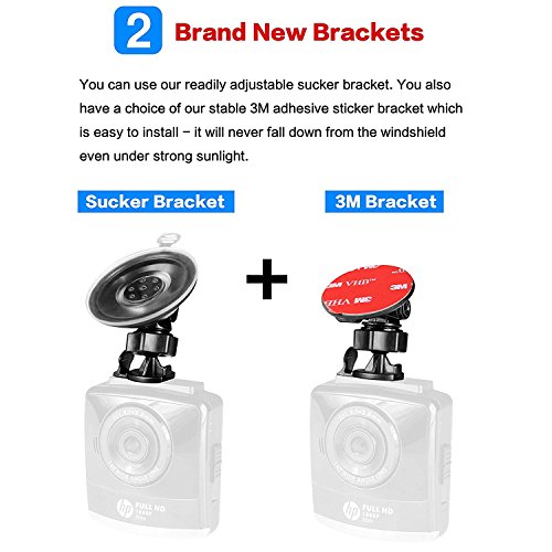 • ?Unobtrusive&Easy Mounting?Super slim design camera which goes in front of your rear-view mirror, looks like part of your car.Easily mount to your windshield in seconds with the included adjustable sucker or 3M sticker bracket,it will never fall down from the windshield even under strong sunlight. It comes with a 3.5meters (11.5ft) car charger which is compatible with most cars.