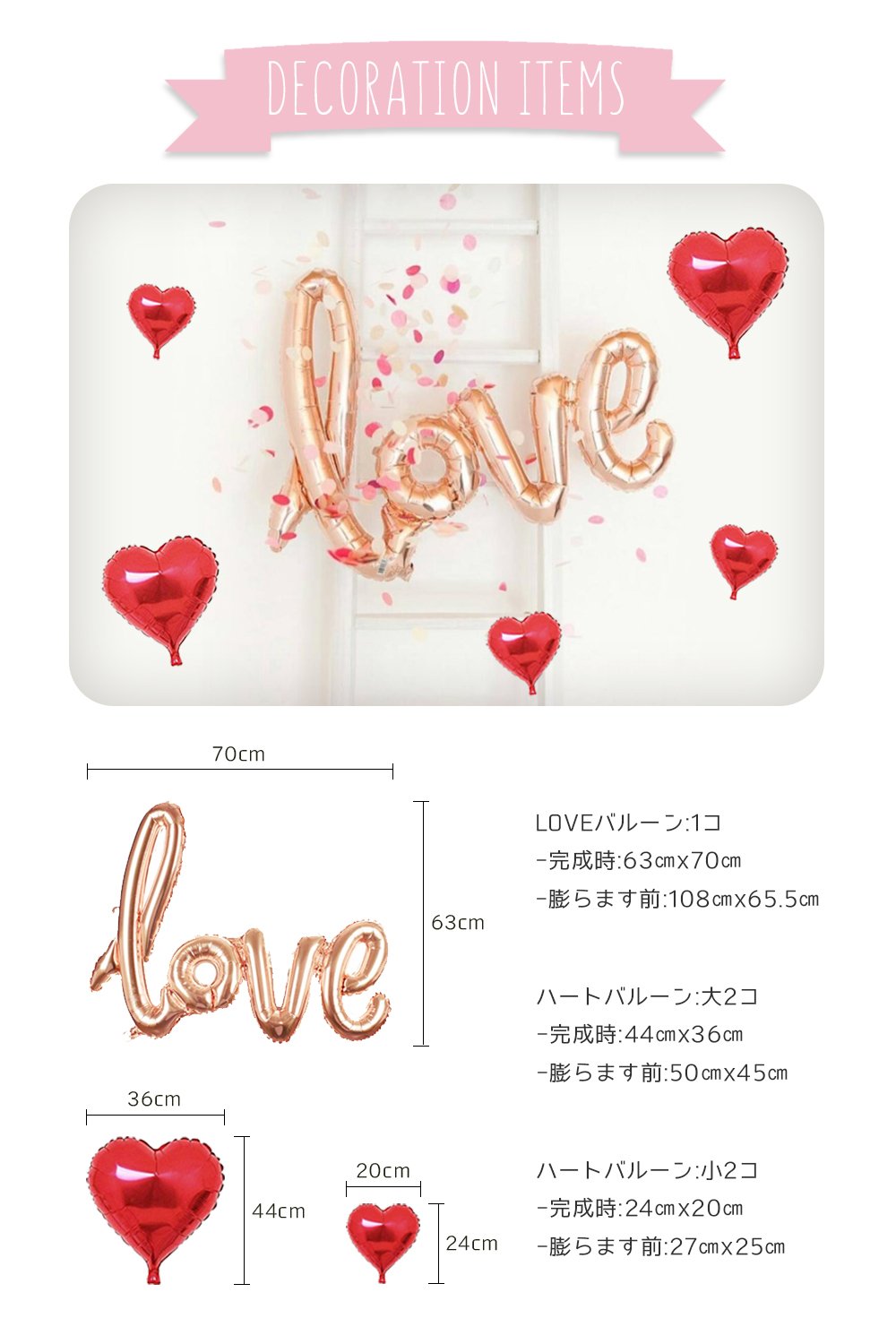 The cursive Love balloon is about 70 cm in length.