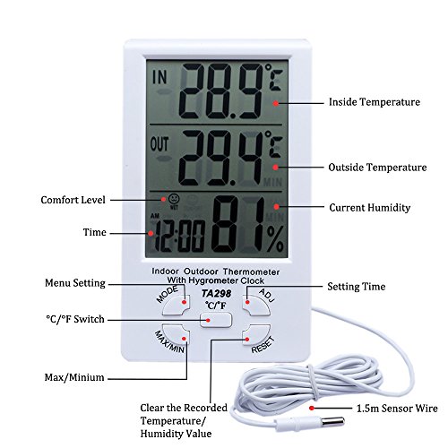 Outside & Inside Digital LCD Thermometer + Hygrometer With Min/ Max Value And Clock