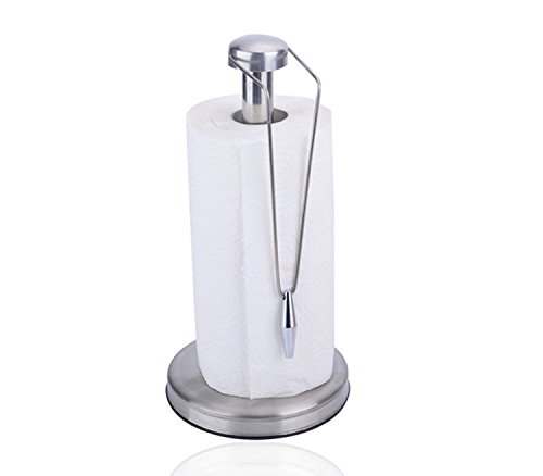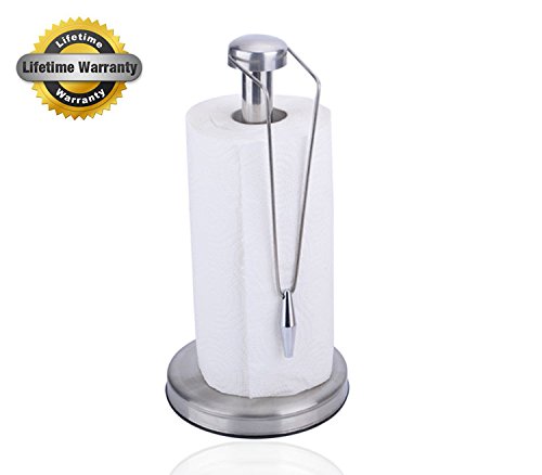 Stainless Steel Paper Towel Holder with Anti-slip Weighted Base Tension Loop, Quick One Handed Tear, Fits Standard and Oversized Rolls for Kitchen Countertop and Office