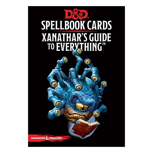 ReleaseDate : 2017-11-10 Studio : PSIQ7 Publisher : PSIQ7 Binding : Toy Product Description This amazing new deck of 95 cards is designed to be utilized in conjunction with the upcoming Xanthan's Guide to Everything from Wizards of the Coast, and it’s certain to be an invaluable resource for any Dungeons Dragons 5E spell caster. Players can consult the entire deck when selecting new spells to learn, and after a long rest, you can set aside those spells you want to prepare for the day. 0
