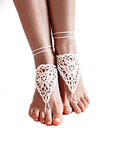 yueton 2pcs Crochet Barefoot Sandals, Nude Shoes, Foot Jewelry, Anklet, Bridesmaid Accessory, Yoga Shoes, Beach Pool Wedding Accessory