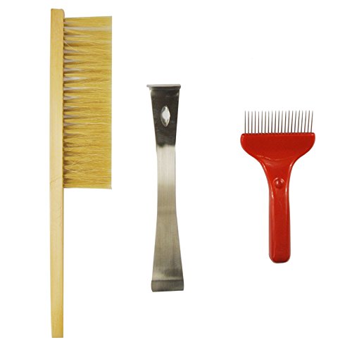 NAVADEAL New Set of Stainless Steel Hive Tool Bee Brush Comb Wax Scratcher Extracting Fork
