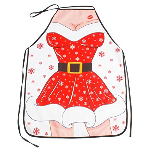 Christmas Apron,Funpa Santa Claus Mrs.Claus Cartoon Pattern Apron Creative Gift for Adults Couples Cooking Crafting Gardening Xmas Party Kitchen Decoration