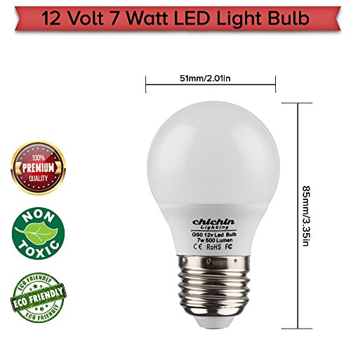 Chichinlighting Low Voltage LED Light Bulbs 12v 7w AC/DC – E26/E27 Edison Base A19 Shape – Warm White 2700k – Off Grid Living Battery Lighting – Marine RV and Camper LED Bulbs - Energy Saving