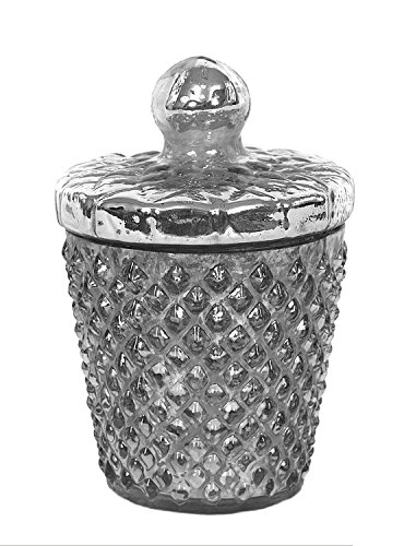 -. Title : Antique Silver Mercury Glass Container with Lid