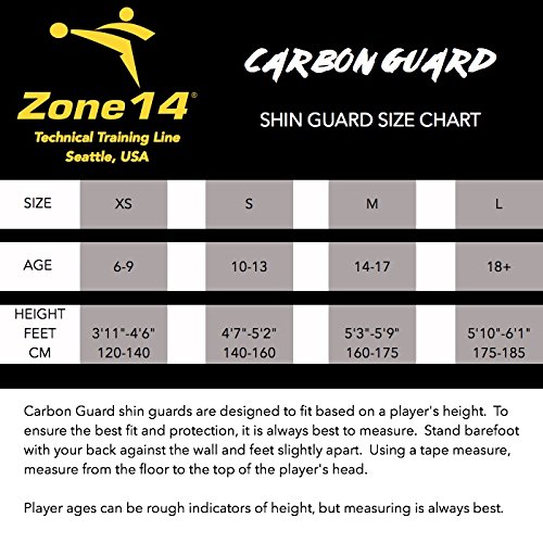 Studio : Zone 14 Publisher : Zone 14 Binding : Misc. Product Description Carbon Guard 100 shin guards offer pure carbon fiber protection at an affordable price. Made of 97% carbon fiber and 3% fiberglass, Carbon Guard 100s are extremely light and provide outstanding impact protection. The EVA foam backing provides added impact absorption and comfort. Included in the package are a pair of Lycra compression sleeves designed to let you slip your Carbon Guards right into the pouch in front. 0