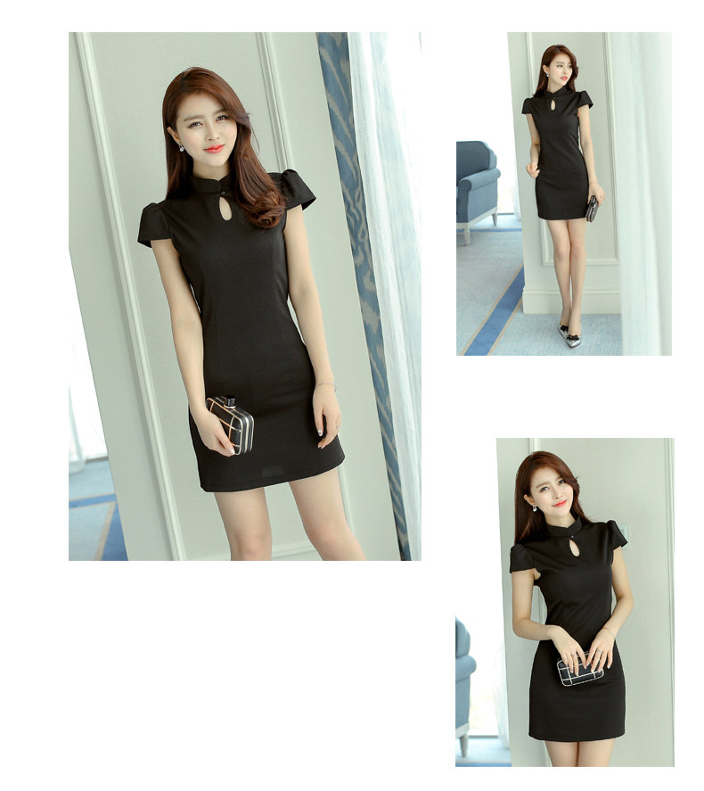 春夏新款女装韩版大码时尚修身收腰短袖打底针织连衣裙