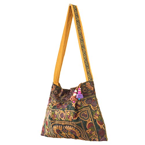 -. Feature : Material : Cotton, Fabric, Zip / Fabric : You may not receive the exact bag picture here, As the fabric design may very slightly from bag to bag. So you can see the small difference between them. One of kind fabrics with their unique embroidery by its artisan. / Zip : This bag has an outside zip closure and inside pocket with zip. / zip : Two pompoms on zip. / Size: Length: 15" (INCH), 39.5cm Height: 11.5" (INCH), 30cm Handler: 13" (INCH), 33.5cm