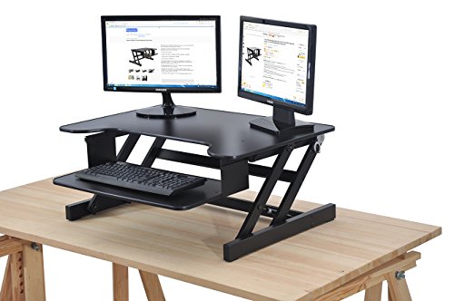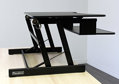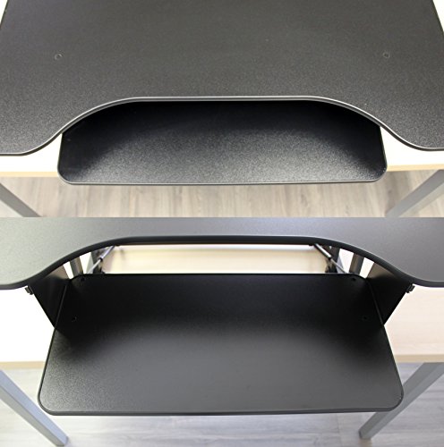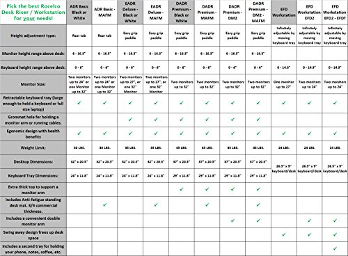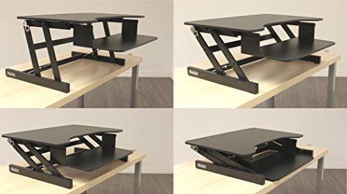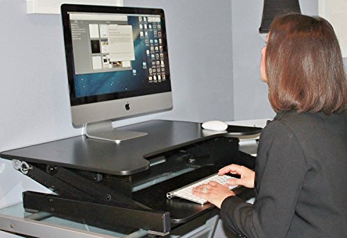 The ADR gives you the best of both worlds. You can sit part of the day, as you always have, but you can also stand and take advantage of all the health benefits that come with standing and moving around. You, and your associates, will become healthier and more productive. Your ADR uses your current desk…….no need to buy all new furniture. You can sit as you always do and then easily raise the large 32" x 20.5" desk and keyboard tray into 5 additional raised positions (up to 16.3" above your regular desk). The large surface can hold 2 monitors or a monitor and a laptop. The ADR is the only Adjustable Desk Riser that offers a retractable keyboard tray. The tray allows you to get into the most comfortable position and it is large enough to hold a laptop computer (with other risers you may have to move the laptop or the entire riser every time you change from sitting to standing). The ADR uses gas springs and can easily raise and lower up to 30 lbs. with a maximum wight allowance of 50lbs. It arrives completely assembled and ready to go!Feature