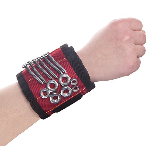 Magnetic Wristband, SUPER STRONG MAGNET, UPGRADED 5Embedded Super Powerful Magnets, Holds Small Metal Tools, Screws, Nails, Bolts Tightly While Working. Perfect Solution to Reach the Toolbox!