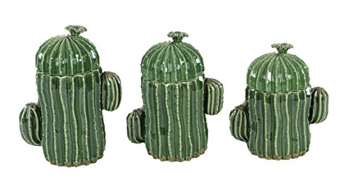 Deco 79 56765 Glazed Ceramic Cactus Jars (Set of 3), Green
